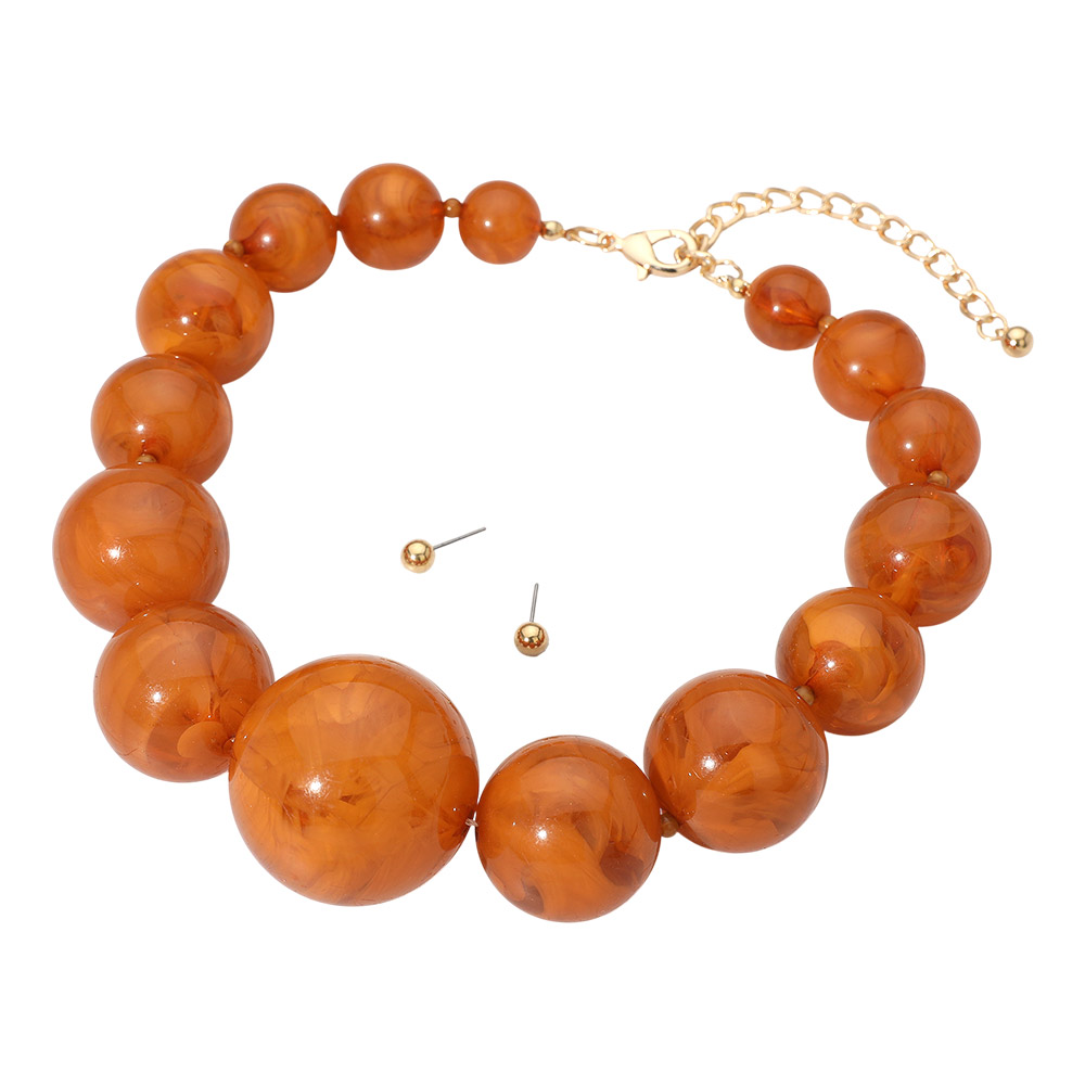 Bold Marbled Resin Ball Beaded Statement Necklace
