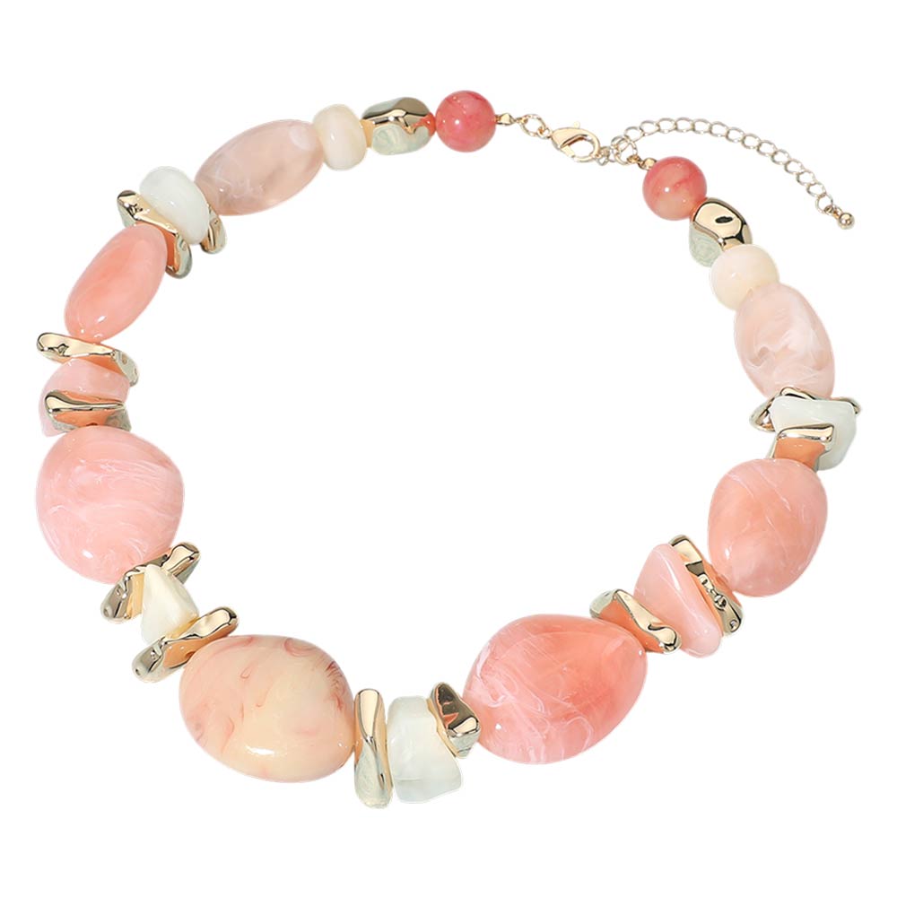 Bold Marbled Resin Pebble Beaded Statement Necklace