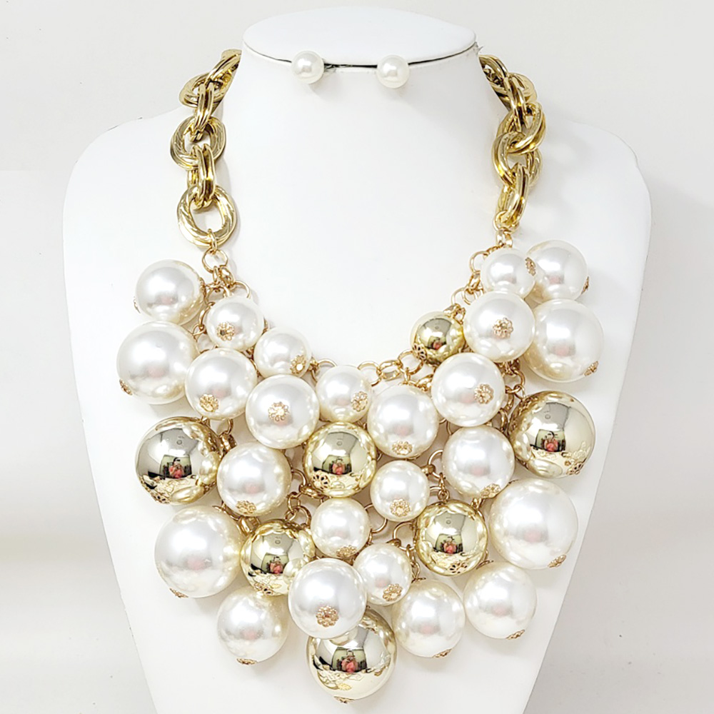 Bold Oversized Beads Embellished Collar Statement Necklace