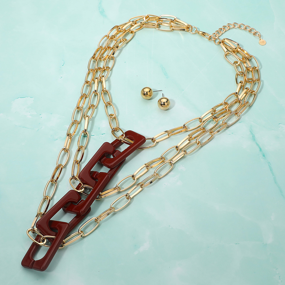 Bold Resin Square Chain Link Accent Paperclip Chin Layered Statement Necklace Bold Resin Square Chain Link Accent Paperclip Chin Layered Statement Necklace