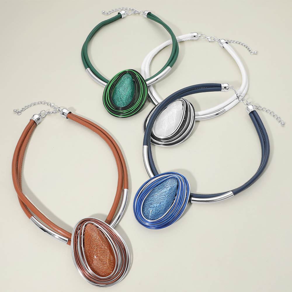 Bold Teardrop Stone Accent Spiral Wire Decor Layered Faux Leather Statement Necklace Bold Teardrop Stone Accent Spiral Wire Decor Layered Faux Leather Statement Necklace Bold Teardrop Stone Accent Spiral Wire Decor Layered Faux Leather Statement Necklace