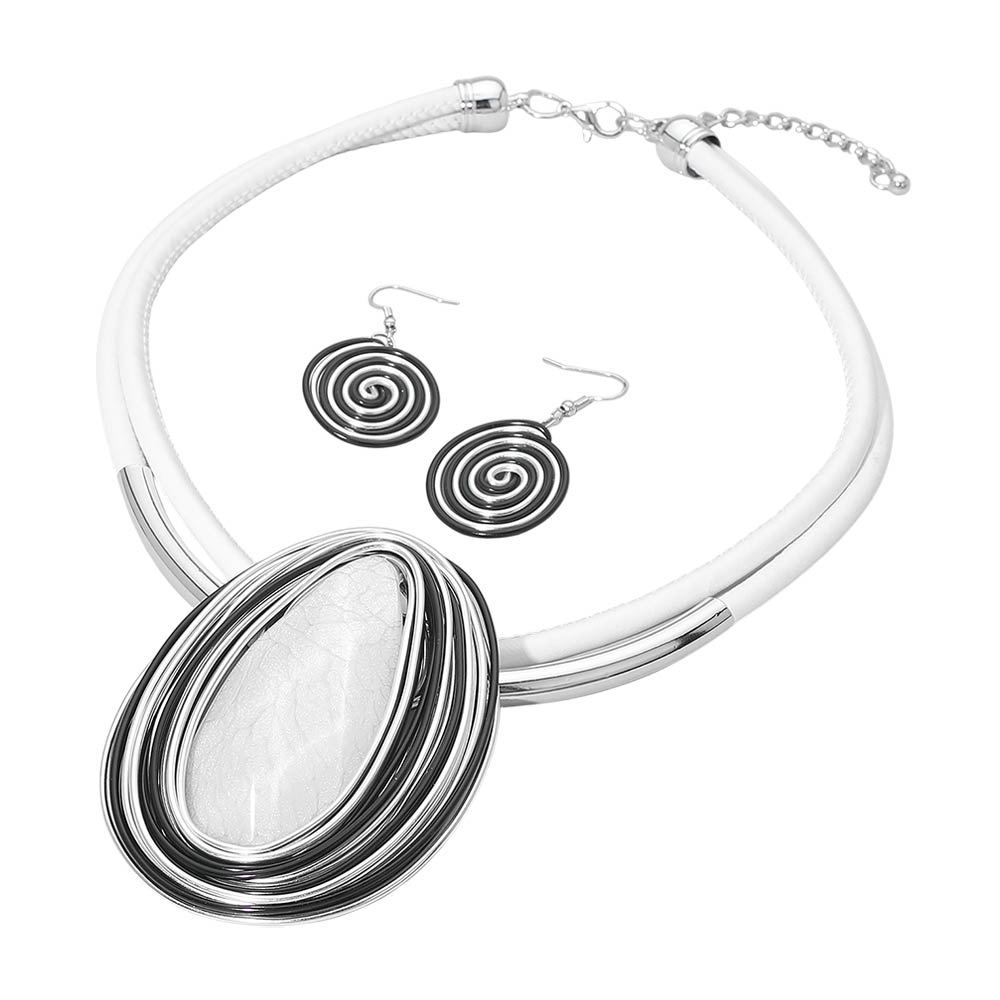 Bold Teardrop Stone Accent Spiral Wire Decor Layered Faux Leather Statement Necklace