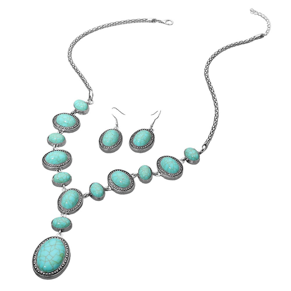 • Make a striking impression with this elegant jewelry set featuring an array of oval accents arranged in a cascading silhouette. Paired with matching drop earrings, this standout design brings a refined, vintage-inspired touch that instantly elevates evening outfits and special occasion style.