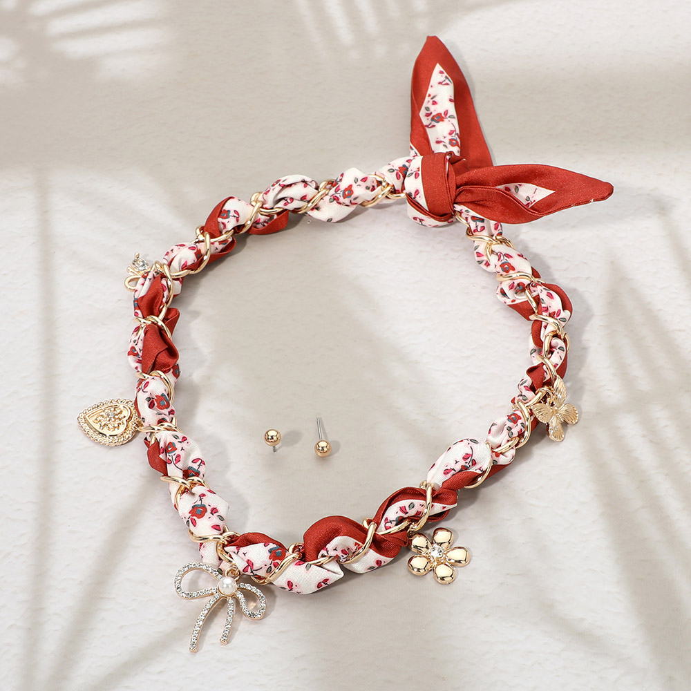 Bow Flower Heart Butterfly Charm Fabric Scarf Necklace