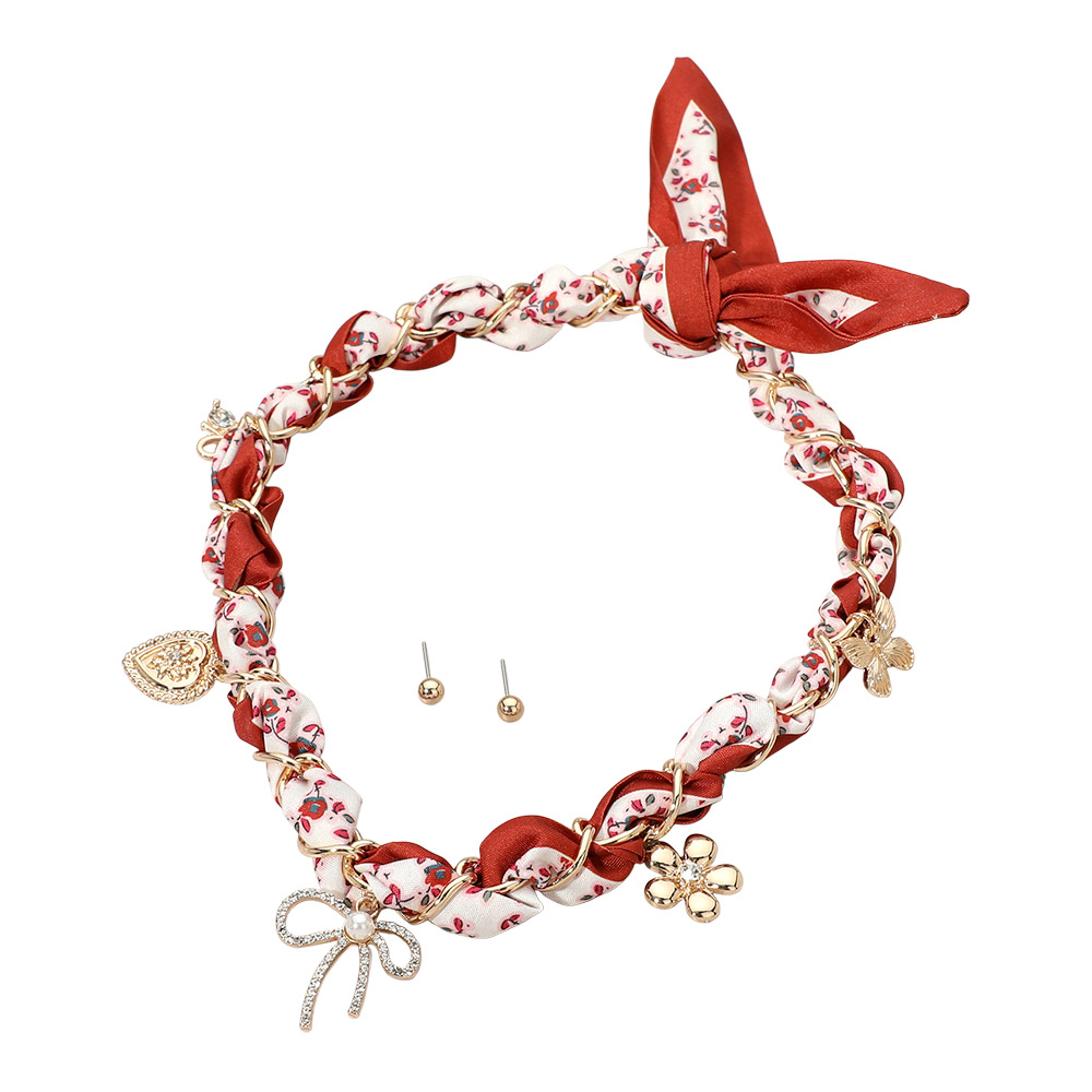 Bow Flower Heart Butterfly Charm Fabric Scarf Necklace Bow Flower Heart Butterfly Charm Fabric Scarf Necklace Bow Flower Heart Butterfly Charm Fabric Scarf Necklace
