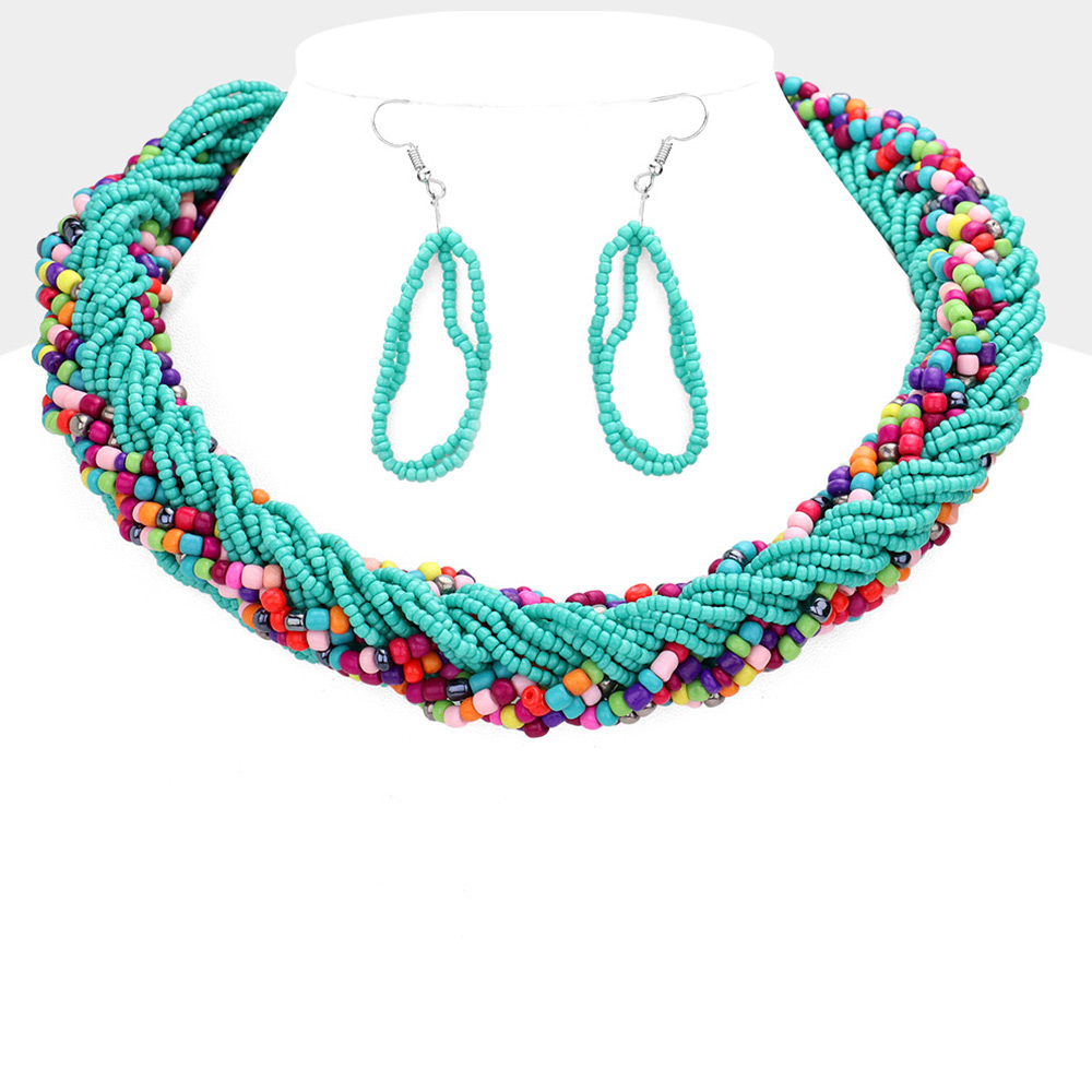Braided Colorful Seed Beaded Necklace