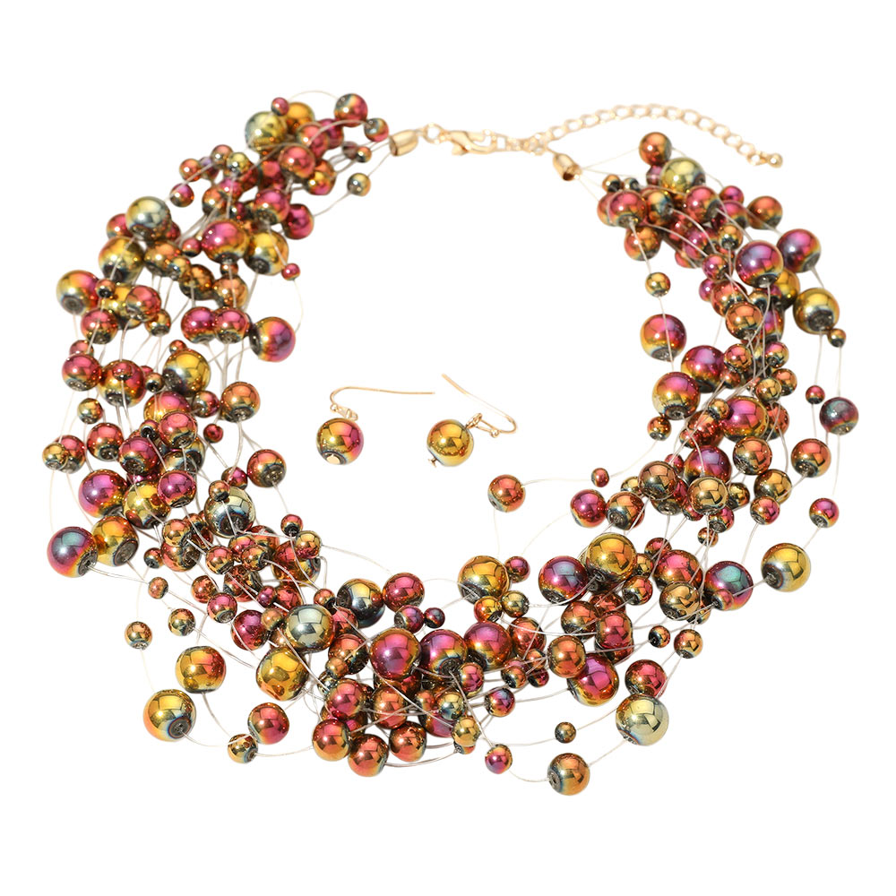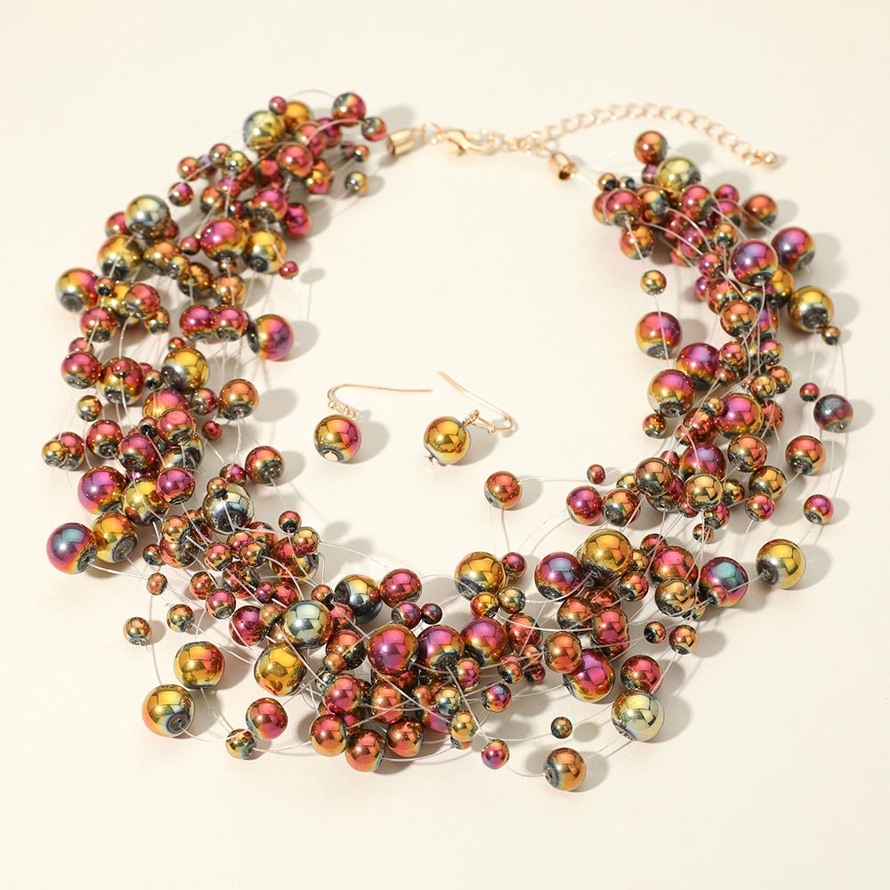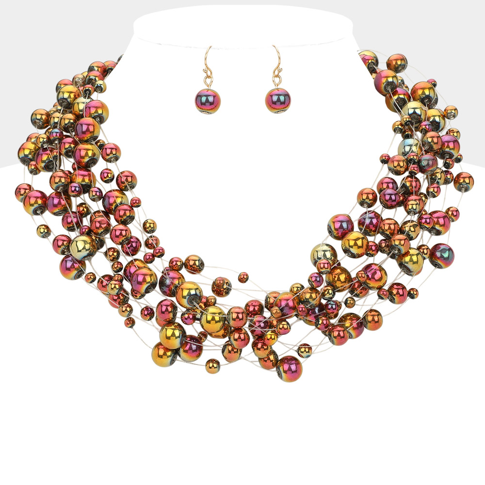 Chunky Iridescent Ball Wire Beaded Bracelet