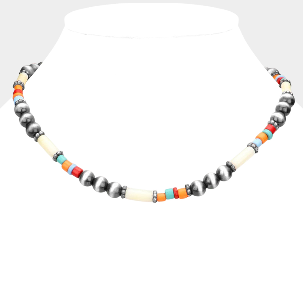 Burnished Metal Ball Beaded Necklace