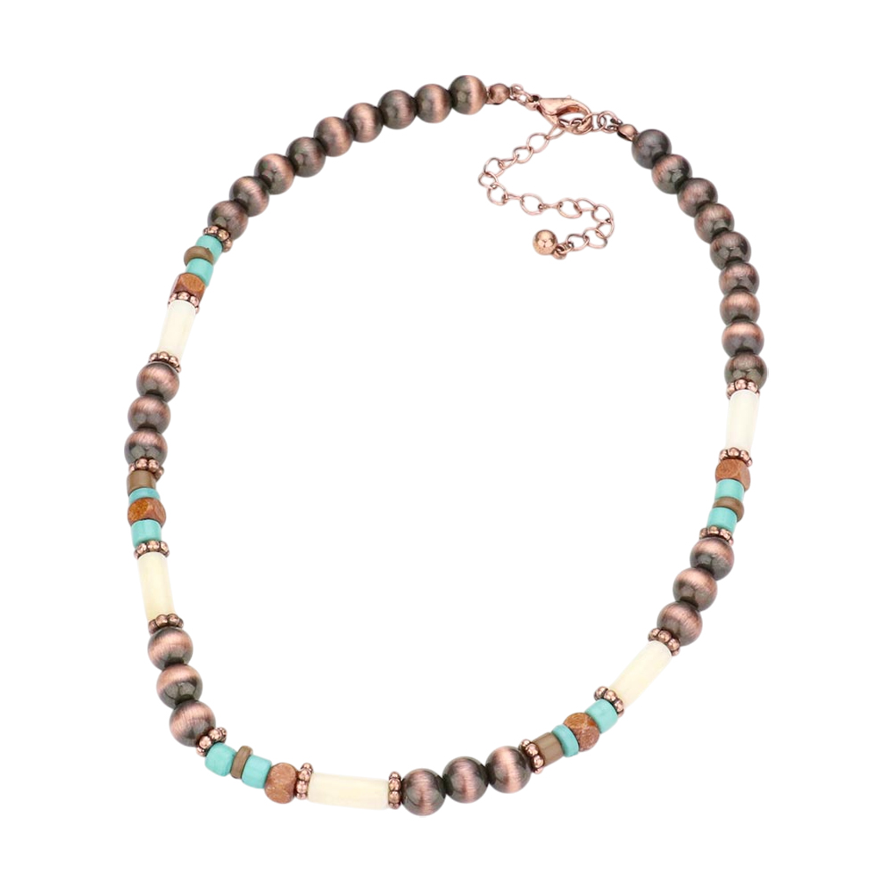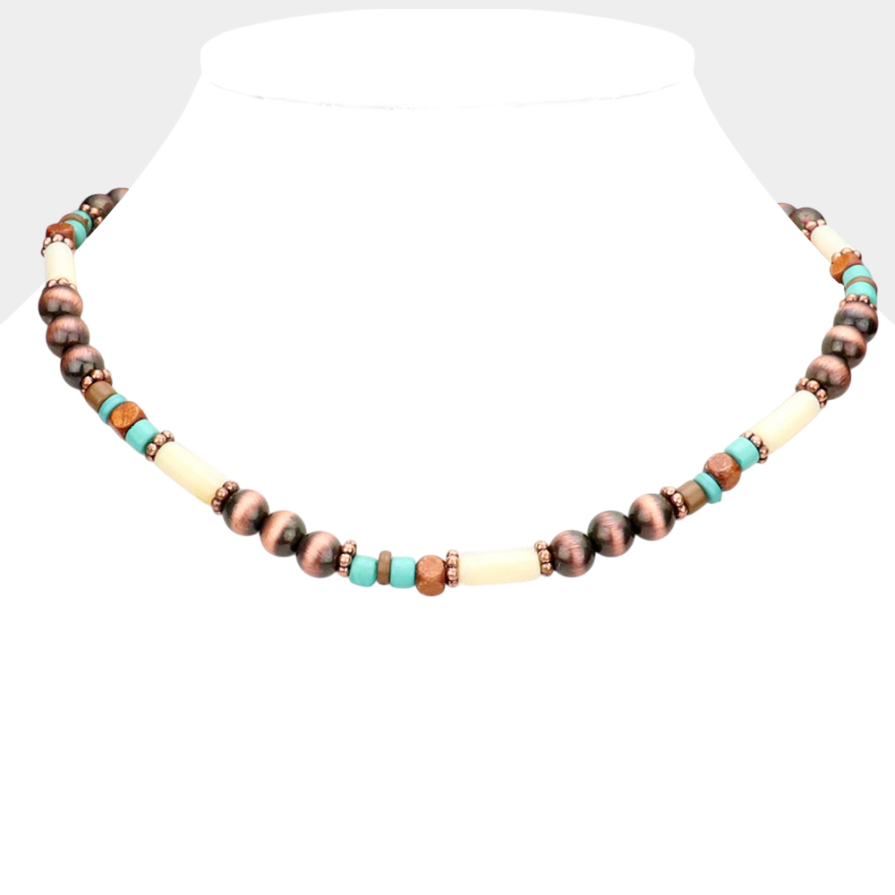 Bold Wooden Textured Metal Ball Beaded Statement Necklace