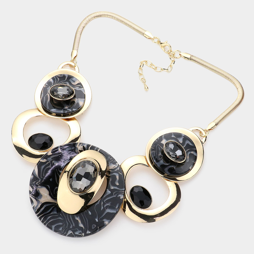 Celluloid Acetate Glass Stone Metal Statement Necklace
