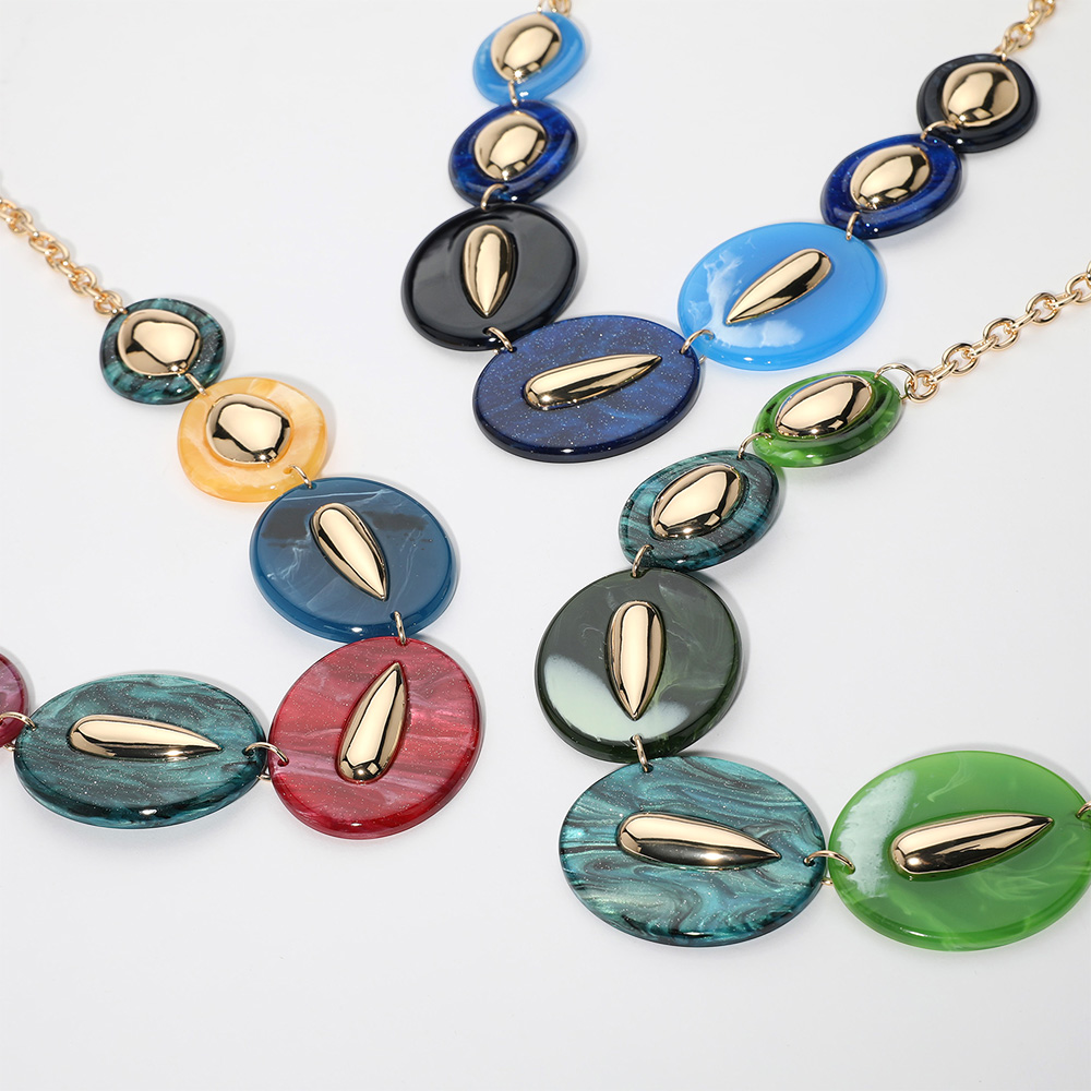 Celluloid Acetate Metal Oval Link Statement Necklace