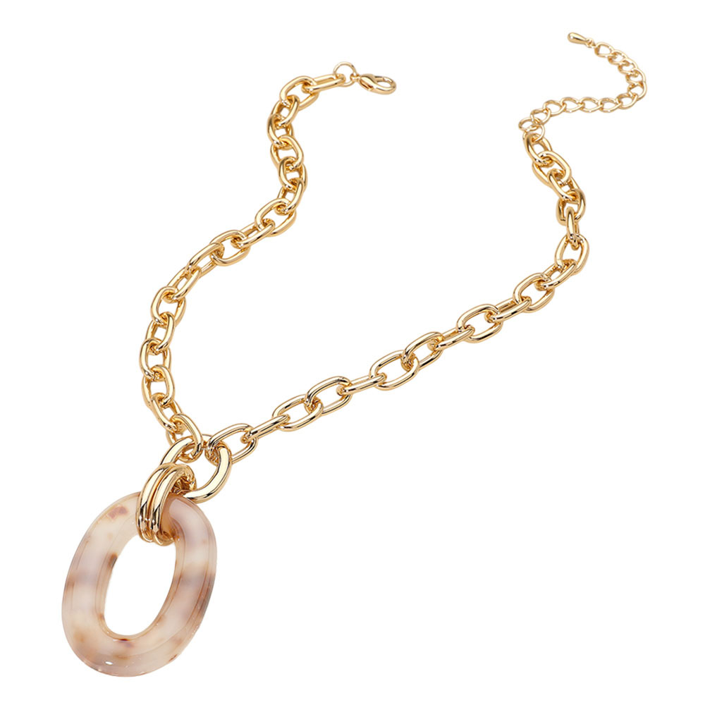 Celluloid Acetate Oval Ring Pendant Chunky Chain Necklace