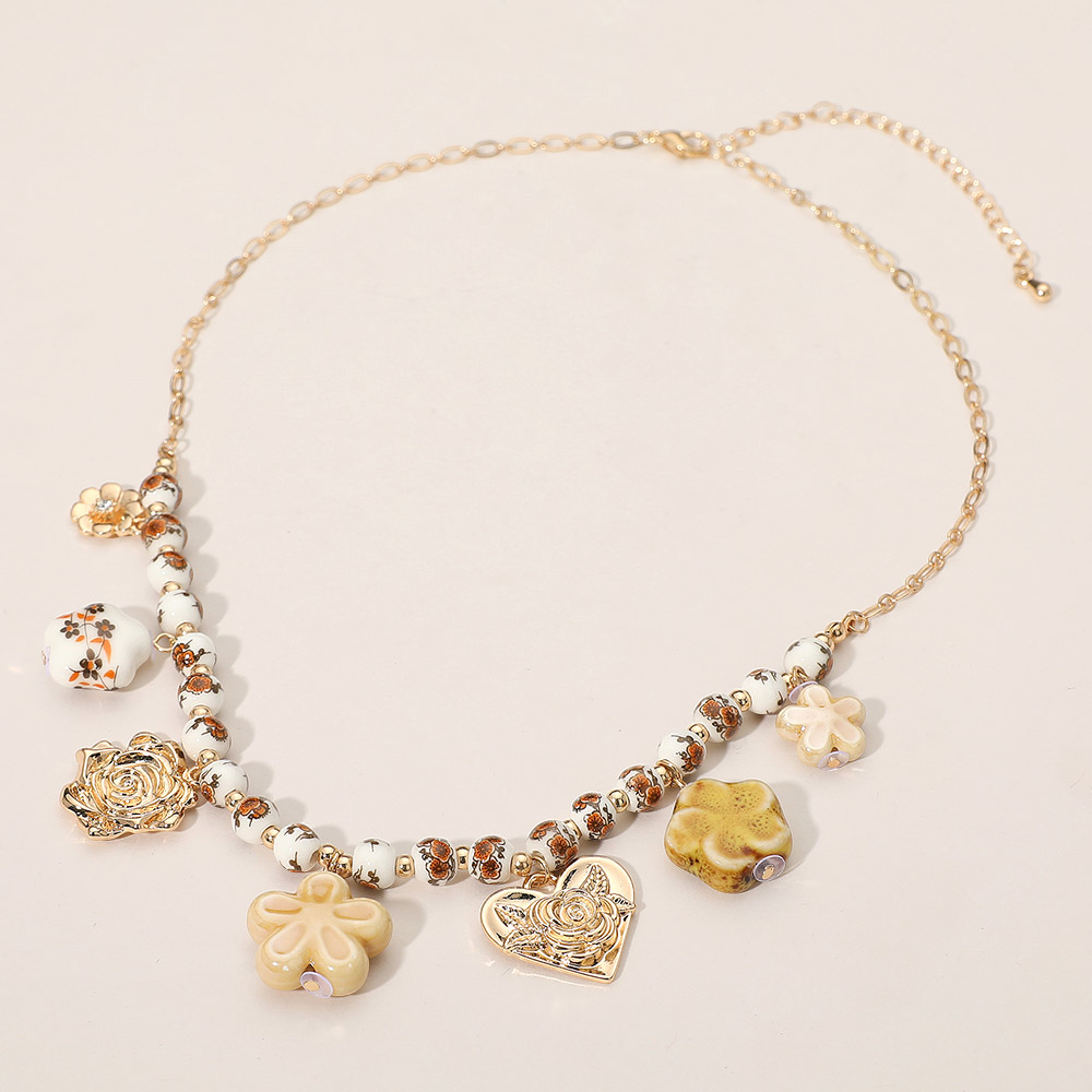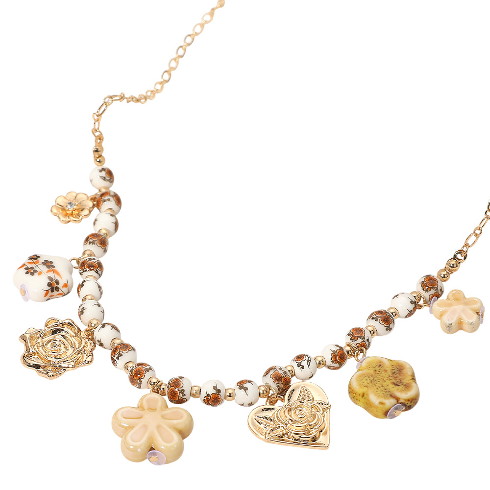 Ceramic Flower Heart Charm Station Floral Beaded Necklace