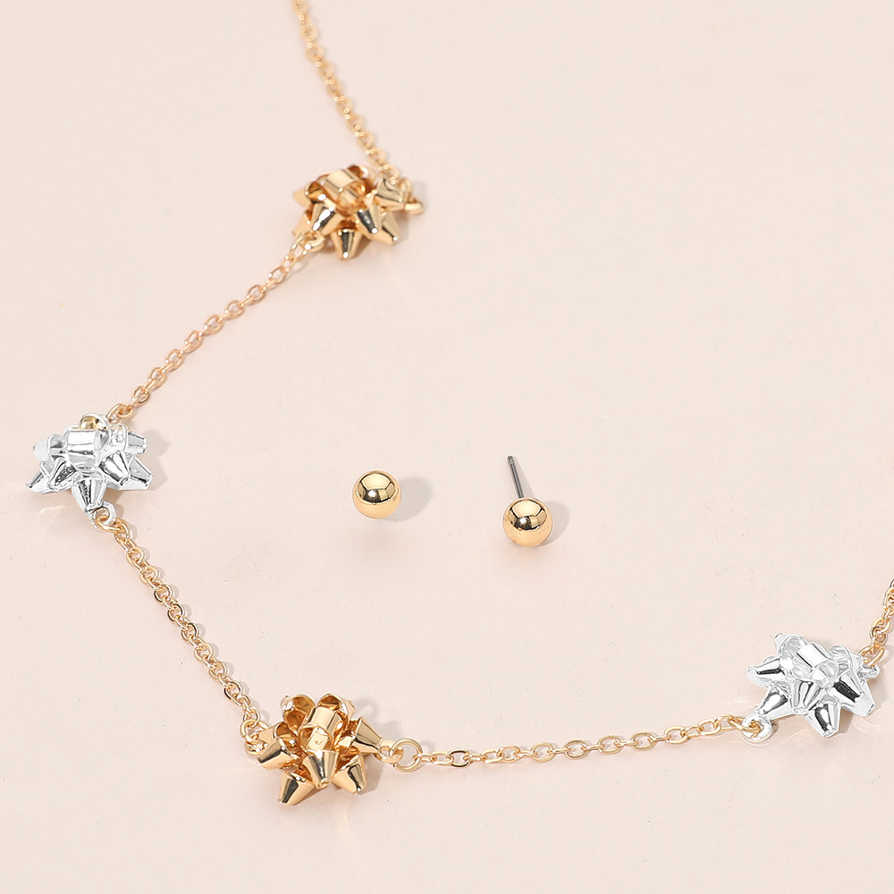 • Charming necklace and earring set featuring bow-shaped accents for a fun and festive look. Perfect for celebrations, parties, or seasonal gatherings, this playful jewelry set adds a cheerful touch to your outfit while maintaining a stylish and coordinated appeal.