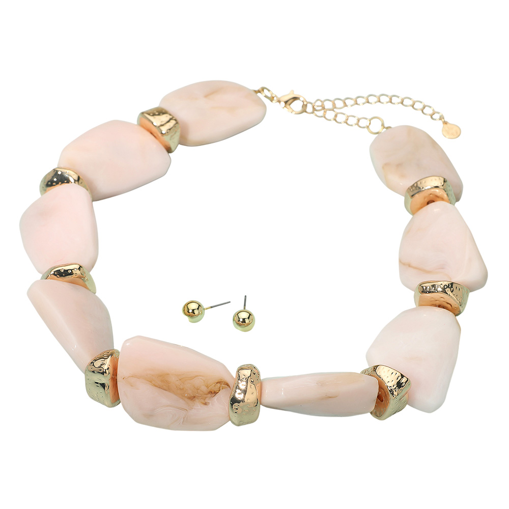• Make a striking impression with a chunky stone necklace set featuring oversized natural-shaped beads and matching stud earrings. Perfect for special occasions or elevating everyday looks, this bold accessory combines earthy elegance with contemporary flair.