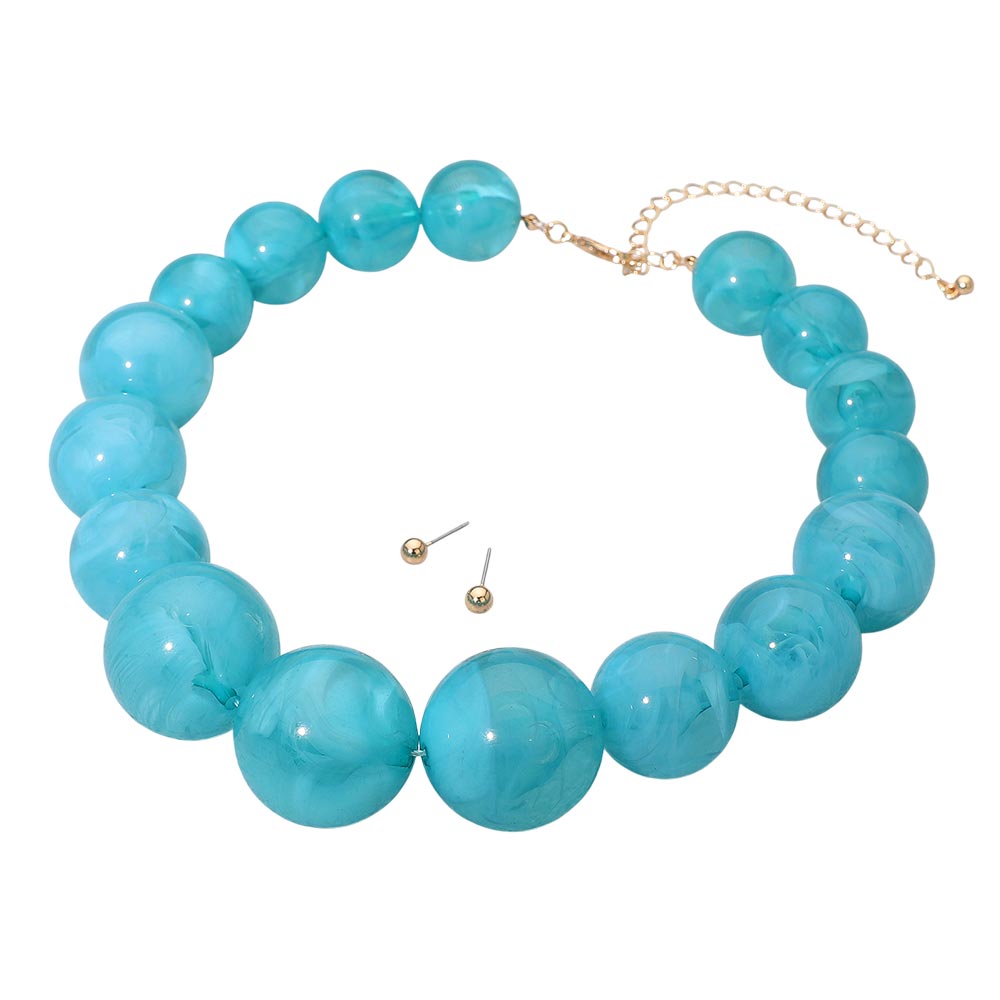 Details • Necklace Size : 16.5" + 4.5" L • Decor Size : 1.25" L • Earrings Size : 0.1" L • Elevate your look with this chunky beaded necklace and matching stud earrings set. Featuring oversized round beads and adjustable length, this statement piece adds bold style to casual or formal outfits. Perfect for parties, events, or everyday fashion, it’s a must-have for your jewelry collection. • Lead and Nickel Compliant