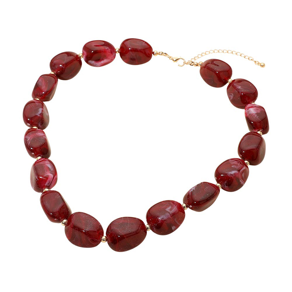 Details • Necklace Size : 18" + 3" L • Decor Size : 0.75" L • This chunky statement necklace features smooth marbled beads that add bold style to any outfit. Its unique texture and striking design make it perfect for elevating everyday looks or complementing special occasion wear, offering a fashionable accent that stands out with modern charm. • Lead and Nickel Compliant