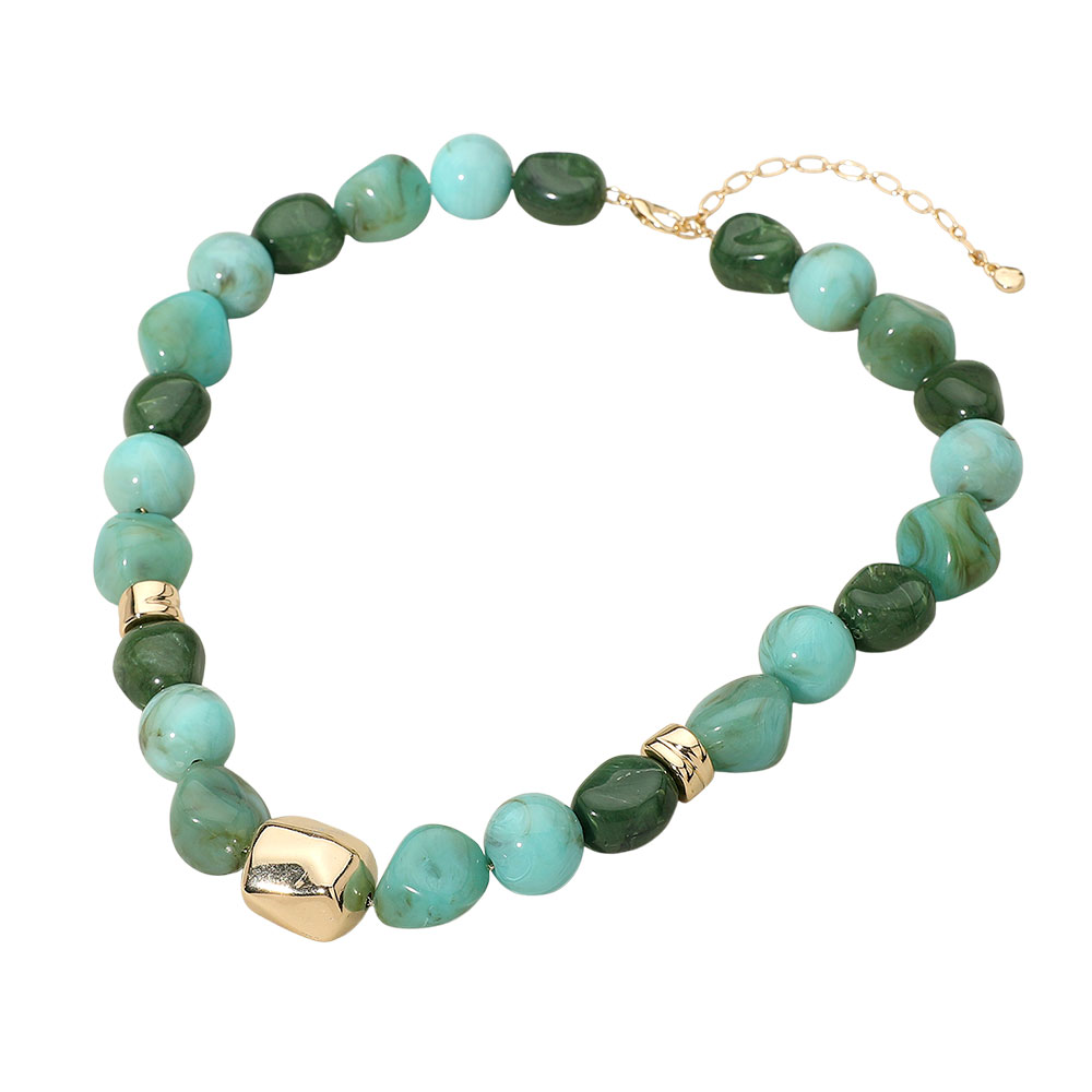 Chunky Metal Accent Resin Pebble Beaded Statement Necklace