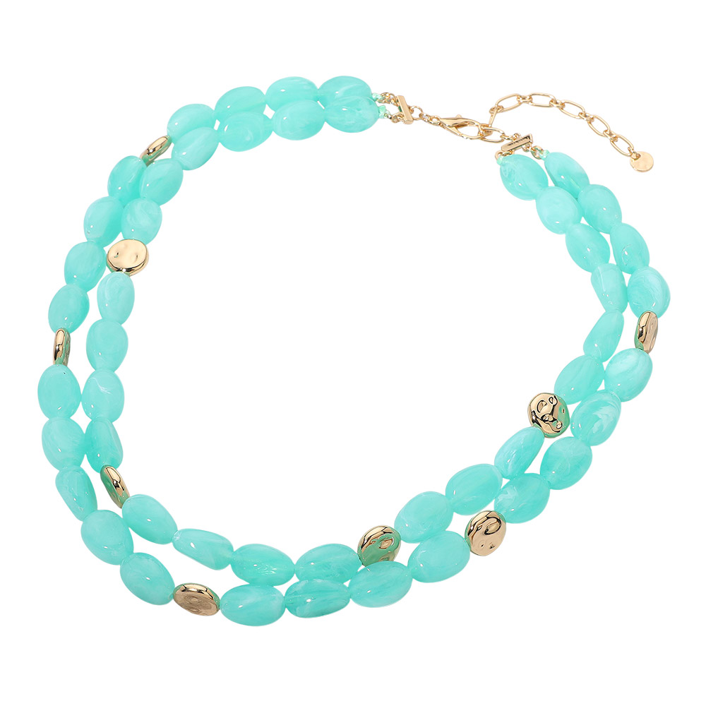 Chunky Oval Resin Pebble Beaded Layered Statement Necklace Chunky Oval Resin Pebble Beaded Layered Statement Necklace