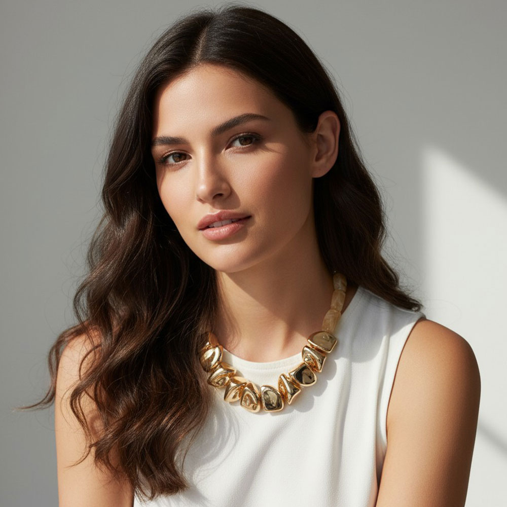 Chunky Resin Pebble Metal Ball Beaded Statement Necklace