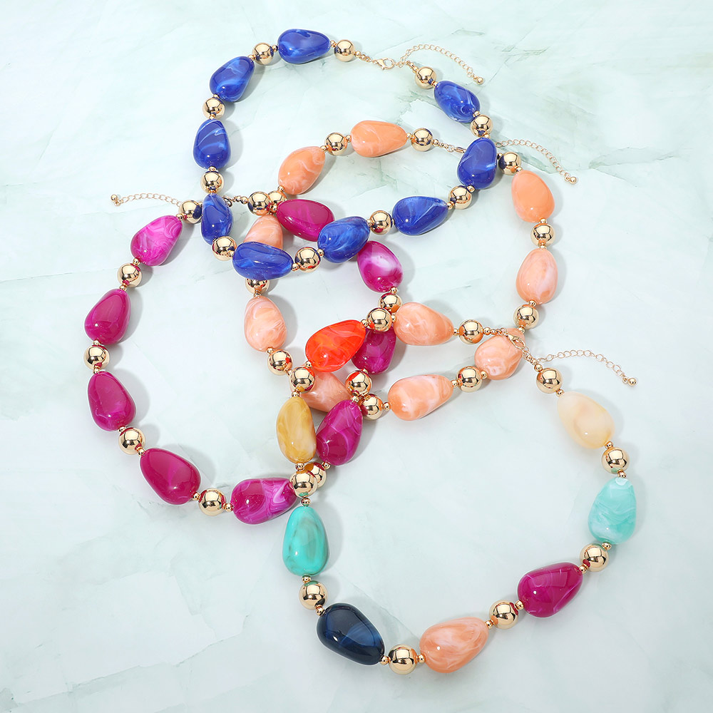 Details • Necklace Size : 18" + 3" L • Decor Size : 0.75" L • Eye-catching statement necklace designed with smooth rounded beads and polished accent spheres for balanced dimension. The structured yet fluid silhouette makes it easy to style with casual looks or elevated outfits, offering a refined focal point that enhances layering or stands out beautifully on its own. • Lead and Nickel Compliant