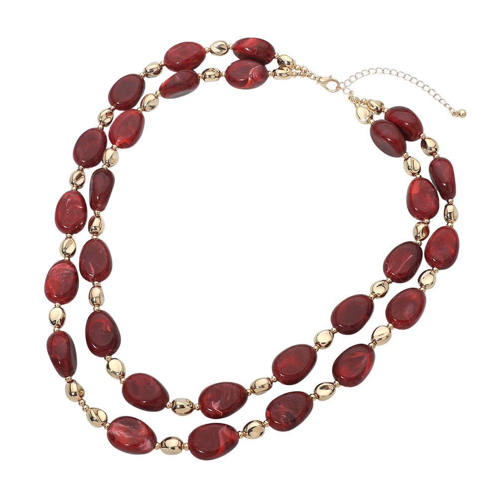 Chunky Resin Oval Marbled Pebble Beaded Layered Necklace Chunky Resin Oval Marbled Pebble Beaded Layered Necklace