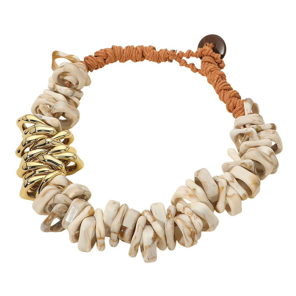 Details • Necklace Size : 19" L • Decor Size : 1" L • Bold statement bracelet featuring layered knotted beads with a textured, sculptural silhouette and adjustable tie closure for easy wear. Designed to add depth and visual impact, this standout bracelet is ideal for boutiques seeking trend-forward accessories that elevate everyday outfits, resort styling, and modern statement jewelry collections. • Lead and Nickel Compliant