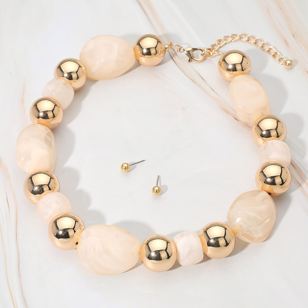 Chunky Resin Pebble Metal Ball Beaded Statement Necklace