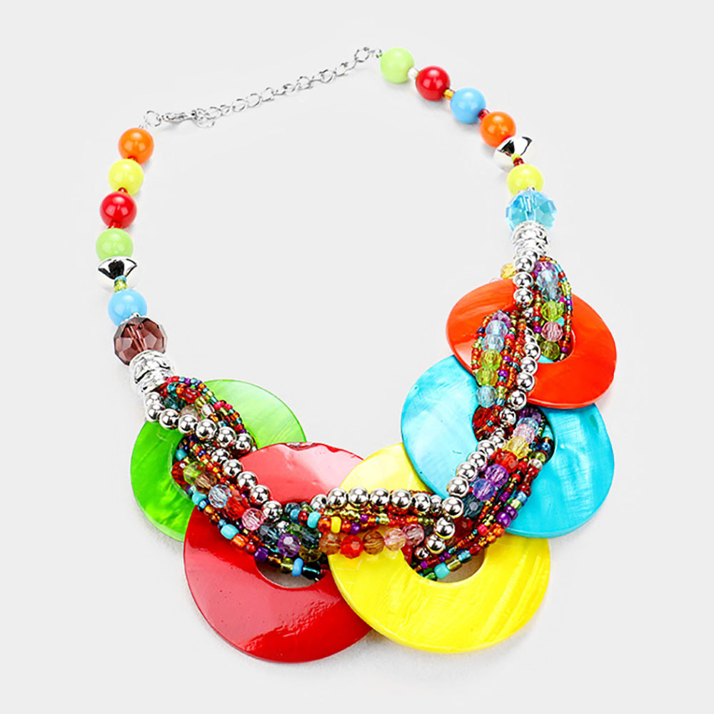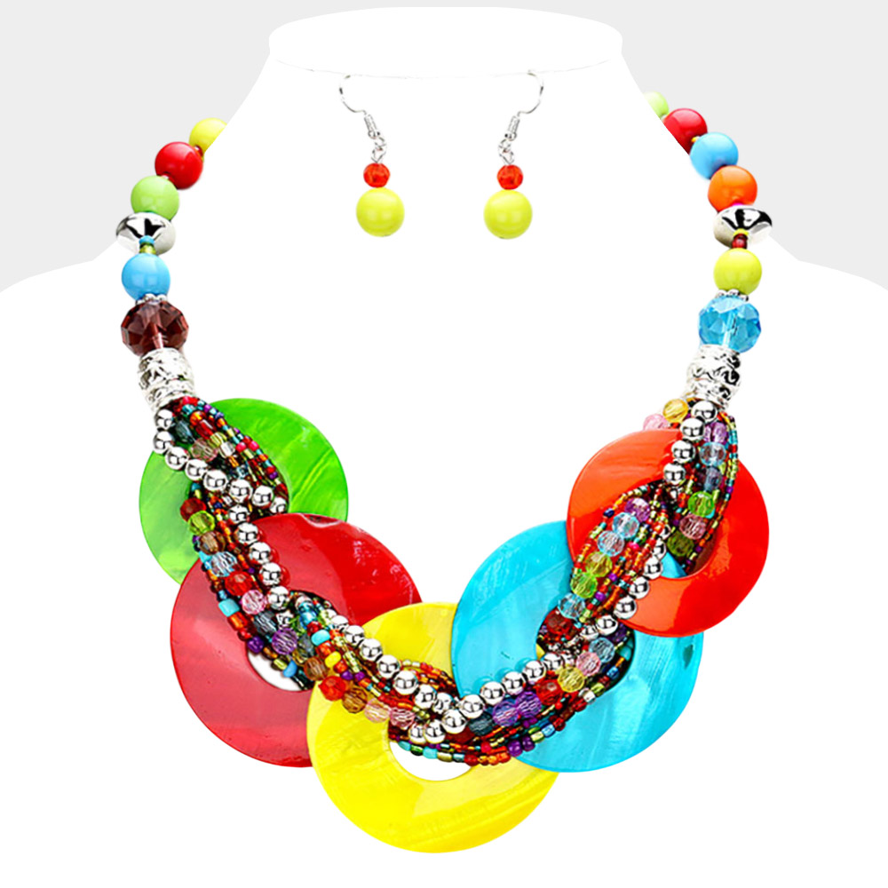• Make a bold impression with this layered beaded statement necklace and matching earrings set. Designed with oversized circular accents and mixed bead strands, it adds vibrant energy and artistic flair to any outfit, perfect for elevating casual or evening looks effortlessly.