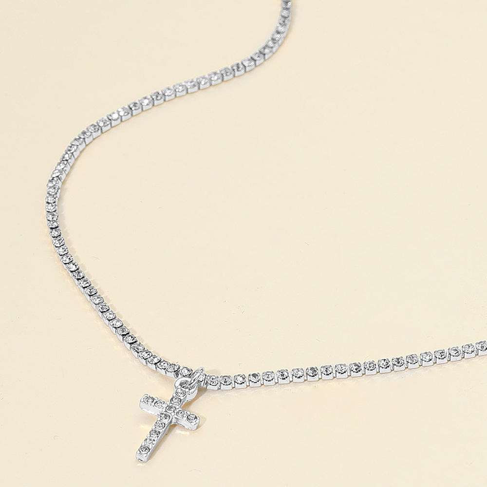 Details • Necklace Size : 15.5" + 3.5" L • Pendant Size : 0.3" X 0.75" • Elegant tennis chain necklace featuring a sparkling cross pendant. Perfect for layering or wearing alone, this timeless accessory adds a touch of faith and sophistication to everyday looks or special occasions. • Lead and Nickel Compliant