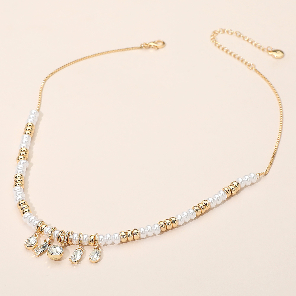 Details • Necklace Size : 16.5" + 3.25" L • Decor Size : 0.75" L • Elevate your style with this elegant necklace featuring a blend of lustrous pearls, polished beads, and sparkling crystal charms. Perfect for both casual and formal occasions, it adds timeless sophistication and a touch of glamour to any outfit. • Lead and Nickel Compliant