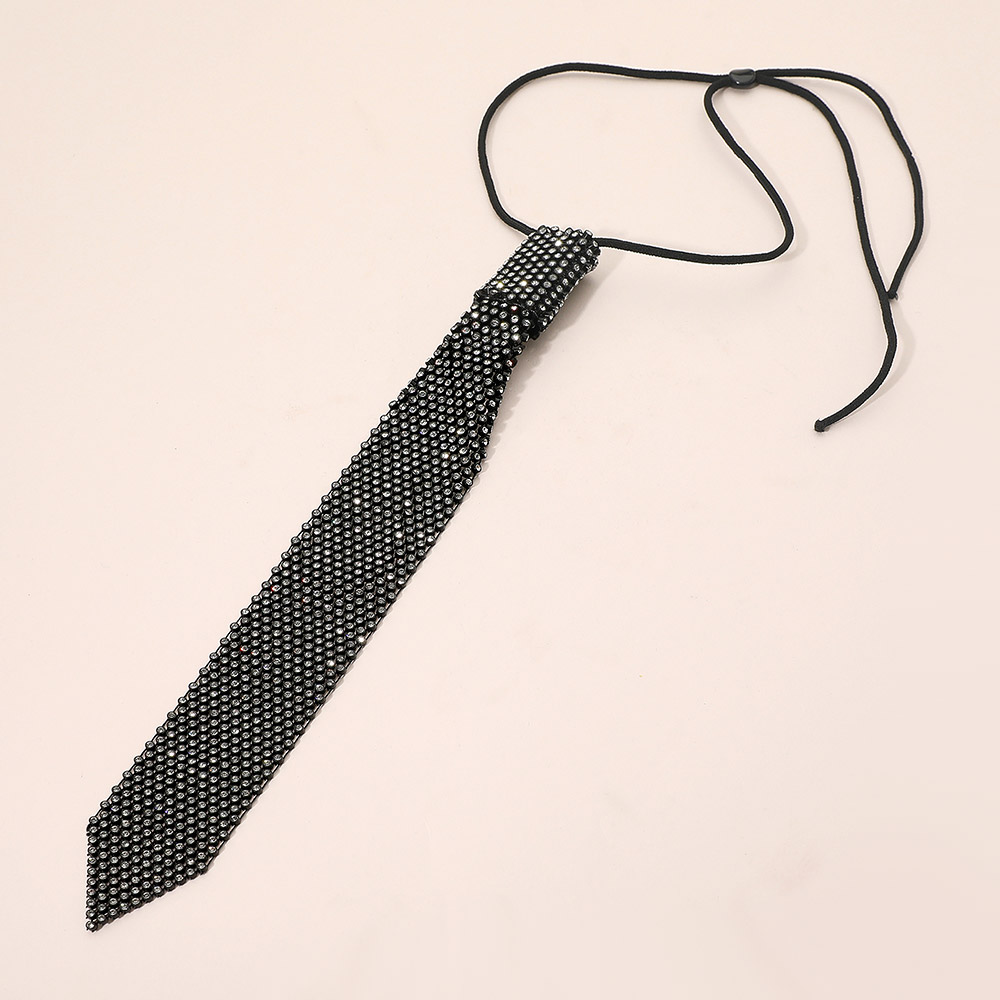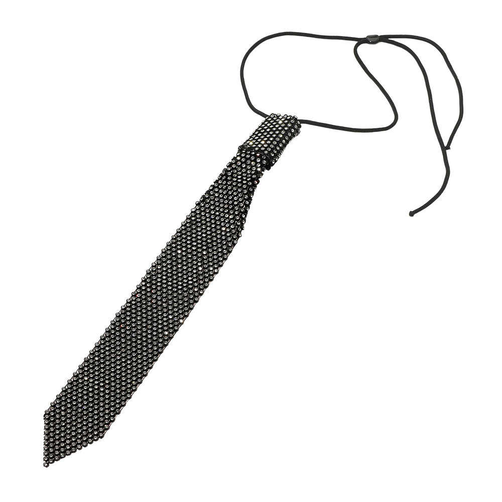• Add a bold sparkle to your outfit with this crystal-embellished tie necklace featuring an adjustable strap for a perfect fit. Its sleek design and shimmering detail make it ideal for parties, concerts, or nights out, giving any look a chic and edgy finishing touch.