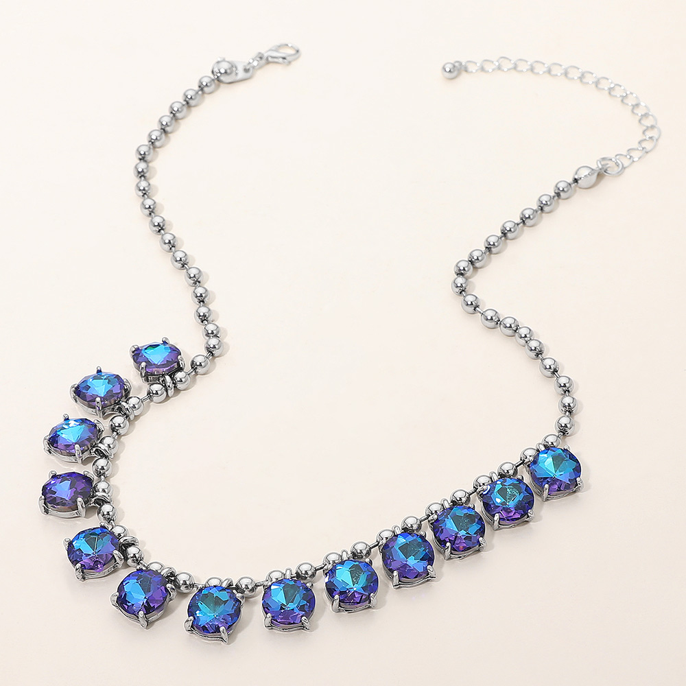 • Elegant necklace featuring a delicate beaded chain accented with faceted round stones arranged along the neckline. Designed to add refined sparkle and balanced detail, this versatile piece suits everyday wear, special occasions, gifting, and boutique collections with a timeless, polished appeal.
