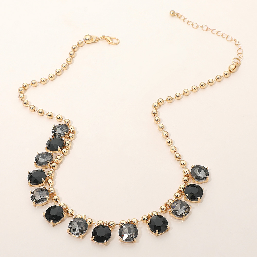 • Elegant necklace featuring a delicate beaded chain accented with faceted round stones arranged along the neckline. Designed to add refined sparkle and balanced detail, this versatile piece suits everyday wear, special occasions, gifting, and boutique collections with a timeless, polished appeal.