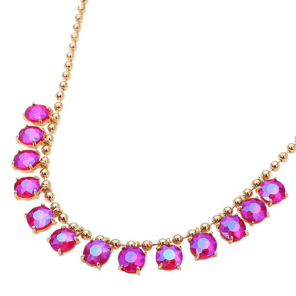 • Elegant necklace featuring a delicate beaded chain accented with faceted round stones arranged along the neckline. Designed to add refined sparkle and balanced detail, this versatile piece suits everyday wear, special occasions, gifting, and boutique collections with a timeless, polished appeal.