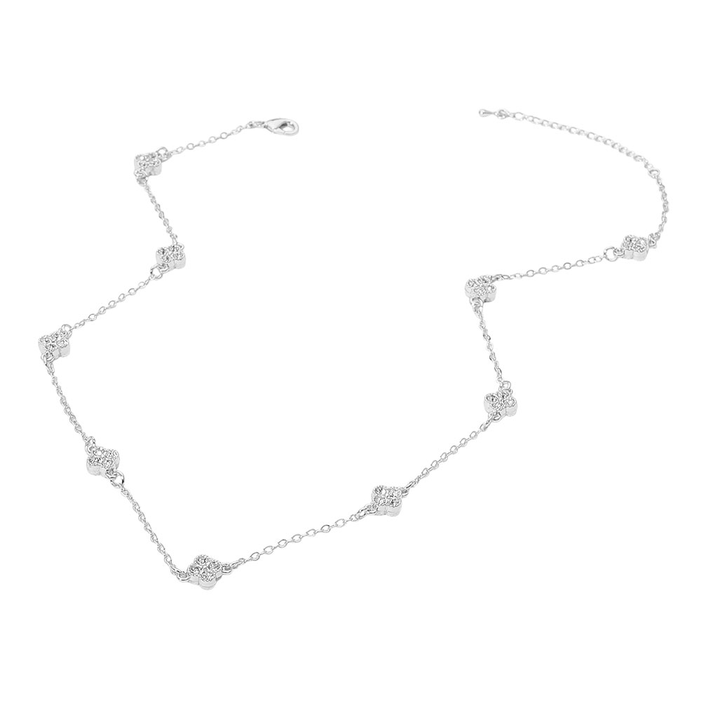 CZ Quatrefoil Charm Station Necklace CZ Quatrefoil Charm Station Necklace CZ Quatrefoil Charm Station Necklace