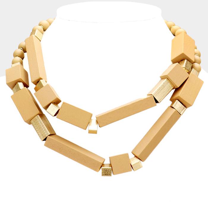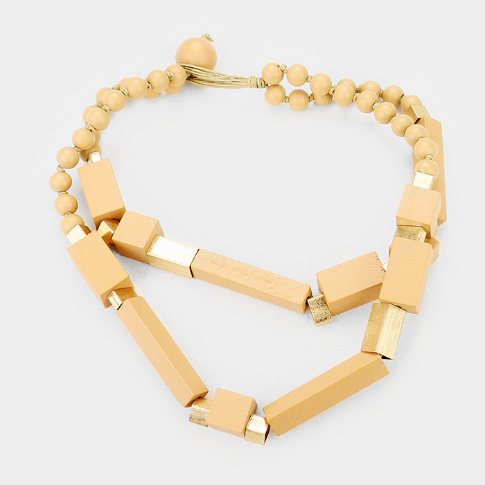 Wide Wooden Bar Accent Beaded Stretch Statement Bracelet