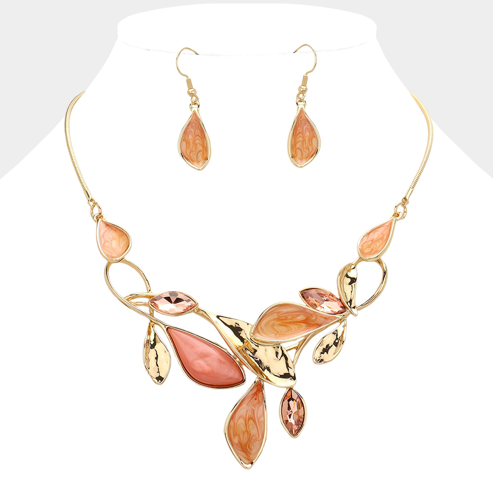 Teardrop Stone Pointed Flower Rhinestone Paved Necklace