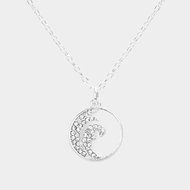 Stone Paved Moon and Star Evil Eye Celestial Charm Pendant Necklace
