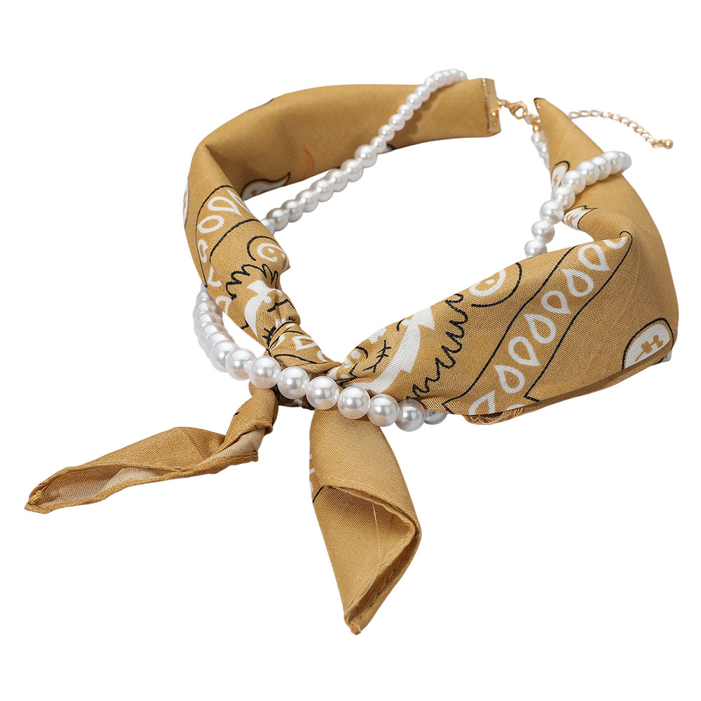 Details • Necklace Size : 20" + 3" L • Decor Size : 4" L • Print may vary • Turn heads with this pearl and scarf statement necklace, blending classic elegance with bold style. The chic combination of lustrous pearls and a patterned scarf creates a versatile accessory that elevates any outfit, perfect for casual charm or standout sophistication. • Lead and Nickel Compliant