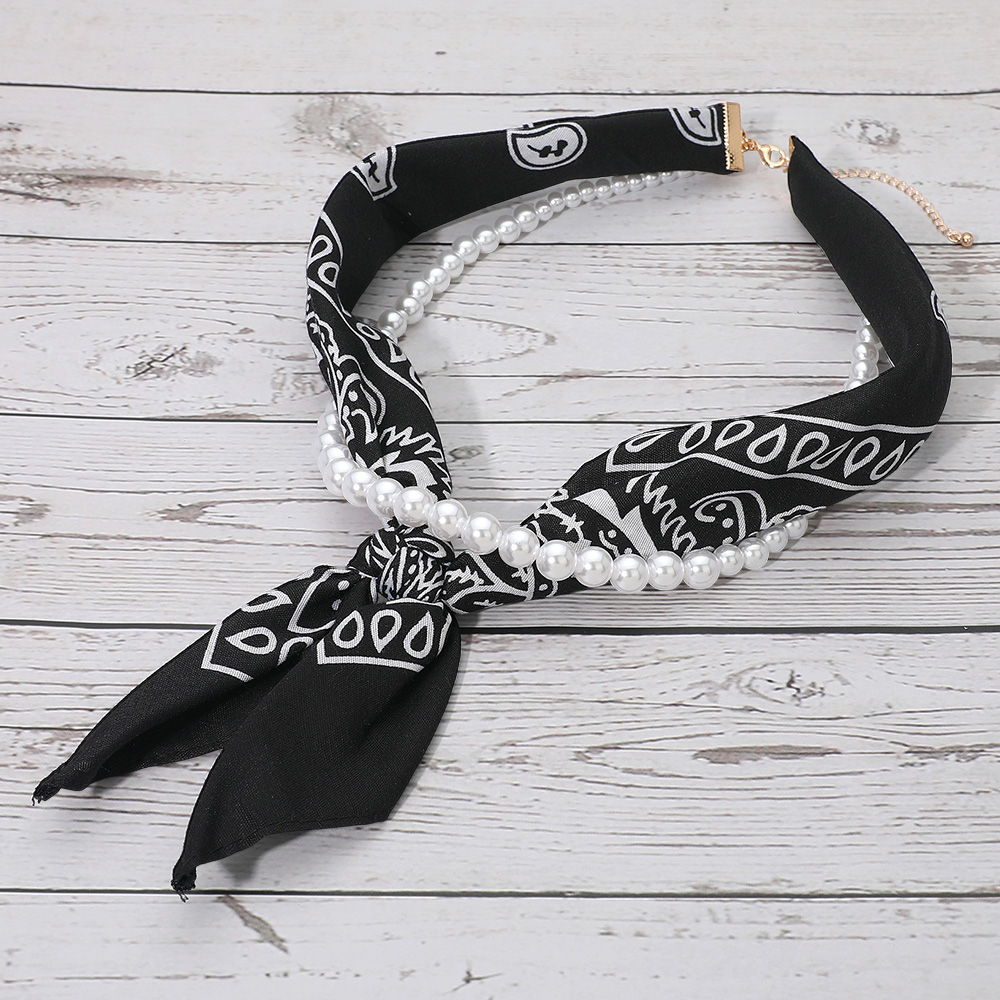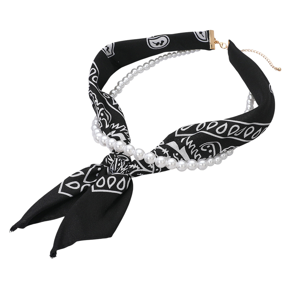 Fabric Bandana Scarf Pearl Layered Necklace Fabric Bandana Scarf Pearl Layered Necklace