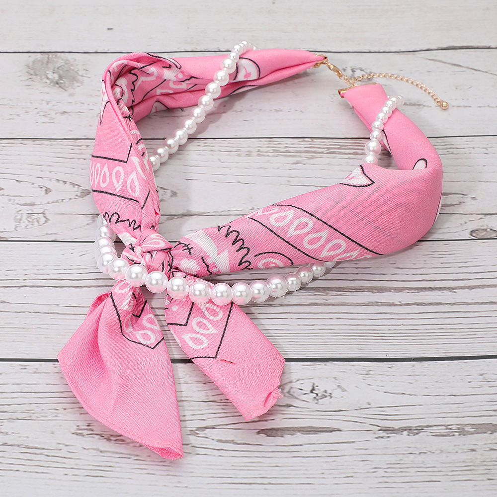Fabric Bandana Scarf Pearl Layered Necklace