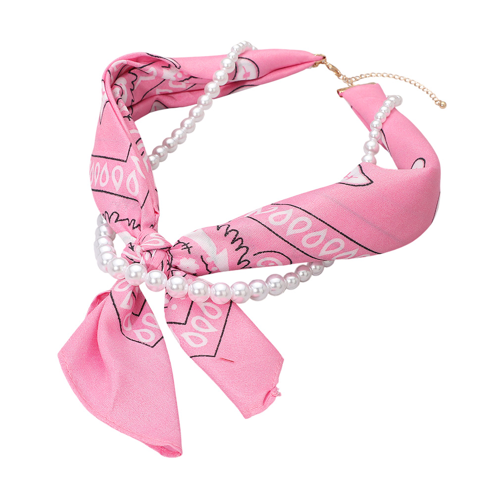 Fabric Bandana Scarf Pearl Layered Necklace Fabric Bandana Scarf Pearl Layered Necklace