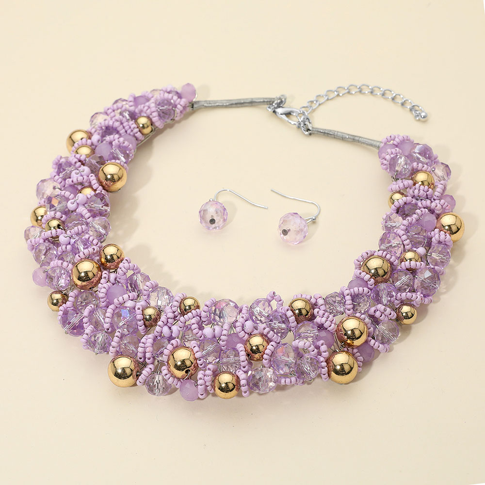 • Glamorous necklace and earring set featuring clustered beads arranged in a bold statement design, perfect for elevating special occasion outfits. This coordinated set adds sparkle and dimension, making it ideal for events, parties, or elegant evening looks.