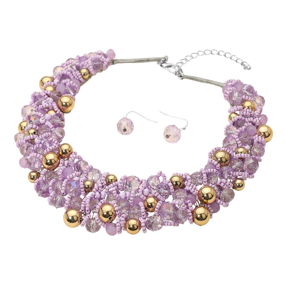Faceted Beaded Collar Statement Necklace