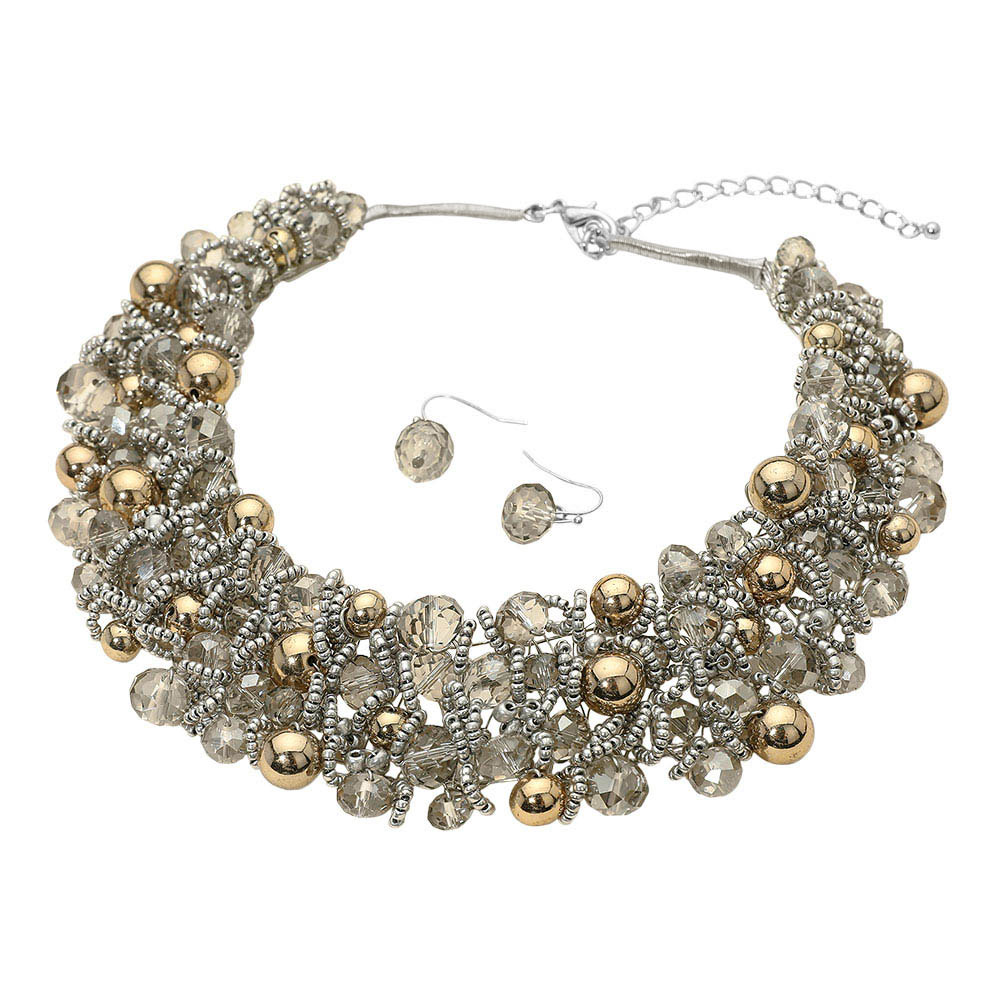 Faceted Beaded Collar Statement Necklace
