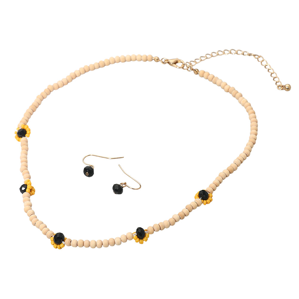 Details • Necklace Size : 15" + 2" L • Decor Size : 0.3" L • Earring Size : 0.3" L • Stylish beaded necklace and earring set designed with contrasting accent beads for a modern, minimalist look. Perfect for everyday wear or casual occasions, this elegant jewelry set adds a subtle pop of style and sophistication to any outfit, making it a versatile accessory choice. • Lead and Nickel Compliant