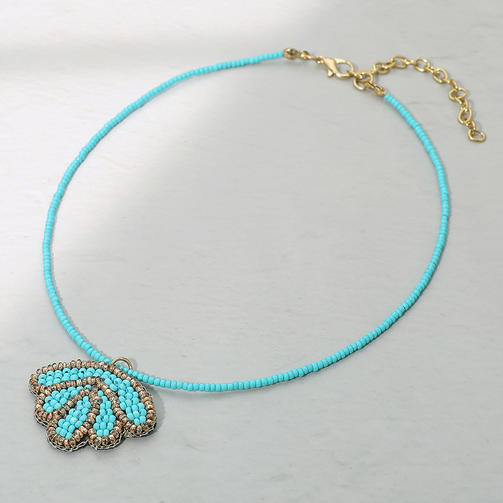 Details • Necklace Size : 14" + 3" L • Pendant Size : 1.3" X 1" • Elegant necklace featuring a handcrafted beaded leaf pendant on a fine beaded chain. Adds a touch of bohemian charm and natural elegance to casual or dressy looks. Lightweight and stylish, this piece is perfect for layering or wearing as a statement accent. • Lead and Nickel Compliant • Made In India