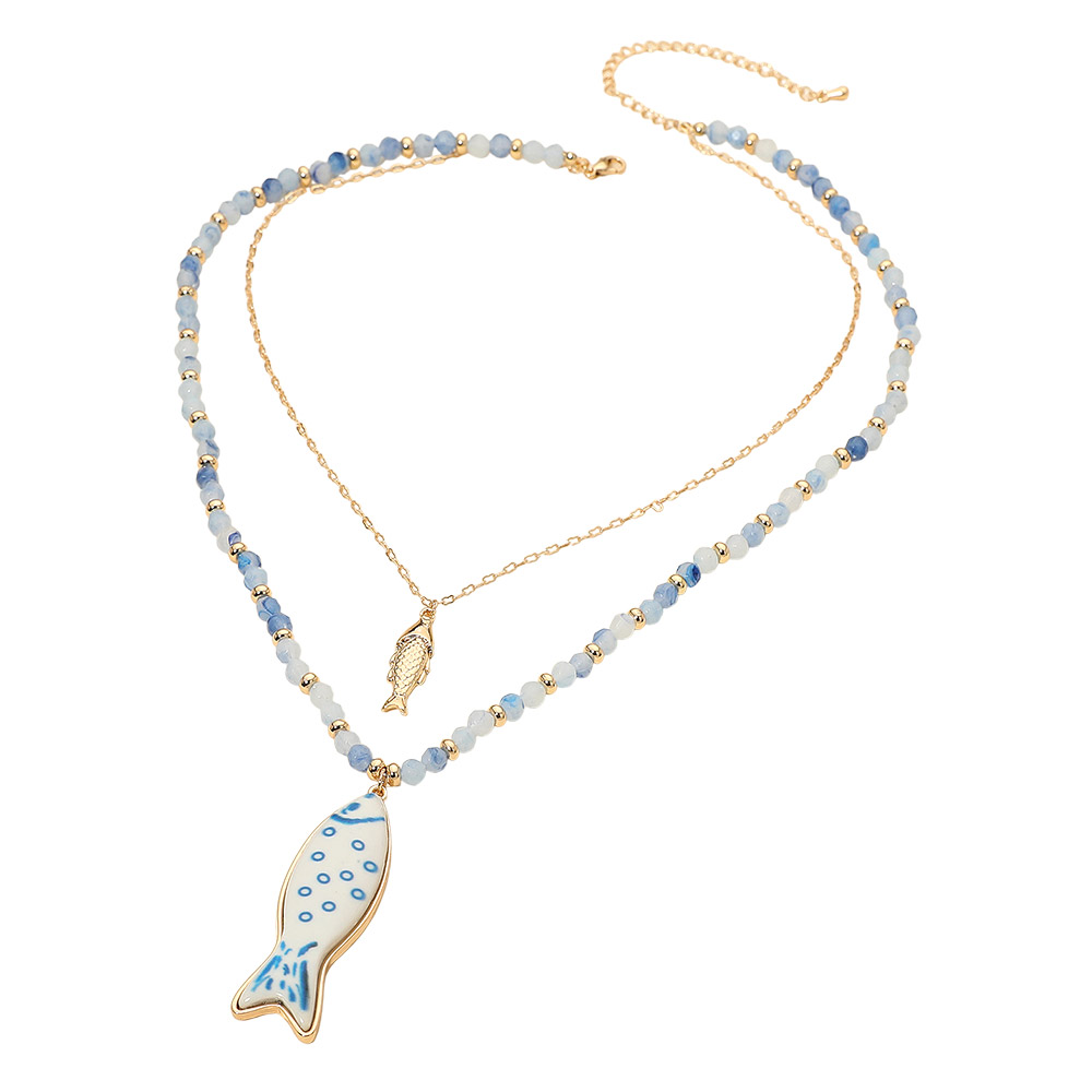 Details • Necklace Size : 16" + 3" L • Decor Size : 4.5" L • Pendant Size : 0.7" X 2" • Add playful detail to your look with this beaded charm pendant necklace, showcasing a delicate strand accented by a statement center charm and adjustable chain. Designed for versatile styling, it layers beautifully with other pieces or shines worn alone. • Lead and Nickel Compliant