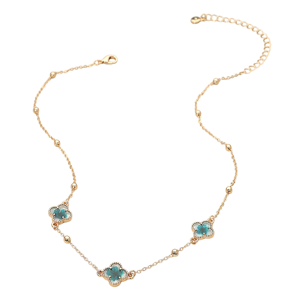 Details • Necklace Size : 16" + 3" L • Decor Size : 0.5" L • Add subtle sparkle to everyday outfits with the Floral Encased Quatrefoil Charm Station Necklace, featuring delicately placed floral accents along a refined chain. Designed for easy layering or solo wear, this necklace offers timeless charm with a light, feminine touch for any occasion. • Lead and Nickel Compliant